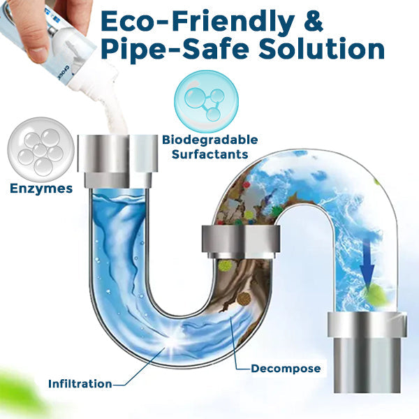 Our drain cleaner is formulated with a powerful combination of biodegradable and non-toxic ingredients. It harnesses the natural cleaning power of plant-based enzymes and biodegradable surfactants, which work together to break down grease, hair, soap scum, and other organic blockages without harming your pipes. It helps preserve the integrity and longevity of your plumbing.