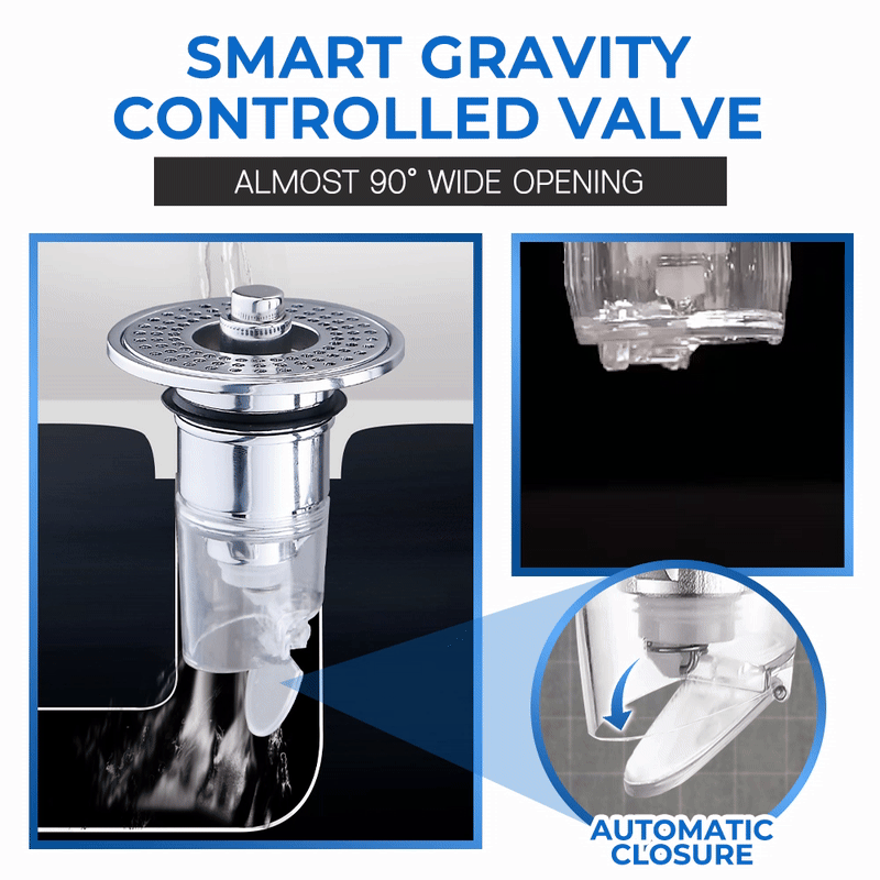 Designed with a nearly 90° wide opening and closing direct gravity core, this drain stopper ensures smooth water flow and efficient drainage. The automatic valve closure activates when no water is being discharged, preventing unwanted odors, debris, and pests from entering your sink. This intelligent design enhances convenience, keeps your space fresh, and ensures a hassle-free experience every time you use your sink.